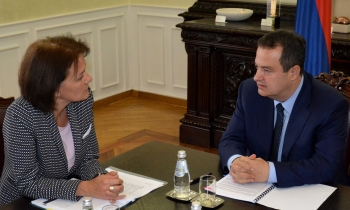 Београд, 6. јун 2016. године – Први потпредседник Владе Републике Србије и министар спољних послова Ивица Дачић разговарао је данас са директором Одељења за западну Европу, западни Балкан и Турску у Спољнополитичкој служби ЕУ Анђелином Ејхорст о евроинтеграцијама Србије, бриселском дијалогу и мигрантима.