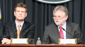 | Џејмс Руф и Душан Вујовић на данашњој конференцији за новинаре |