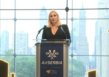 првог директног лета „Ер Србије“ на линији Београд–Њујорк, изразила наду да ће лет на тој релацији бити "више од директног лета", да ће више људи доћи да упозна Србију, као и да ће бити уведене нове линије до још неких градова у САД.