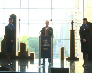 Присутнима се путем видео-поруке обратио и најбољи светски тенисер Новак Ђоковић, који је „Ер Србији“ честитао увођење директног лета за Њујорк.