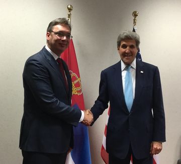Београд/Брисел, 18. јул 2016. године – Председник Владе Републике Србије Александар Вучић састао се данас у Бриселу са државним секретаром Сједињених Америчких Држава Џоном Керијем, са којим је разговарао о унапређењу иначе добрих билатералних односа између Републике Србије и САД.