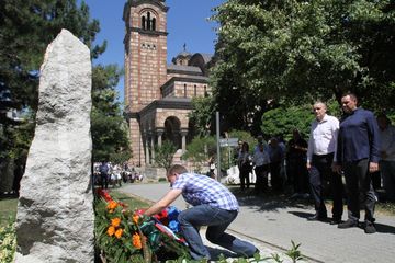 Београд, 5. август 2016. године – Министар за рад, запошљавање, борачка и социјална питања у Влади Републике Србије Александар Вулин присуствовао је данас парастосу у цркви Светог Марка у Београду и положио венац на споменик жртвама страдалим у ратовима у бившој Југославији од 1991. до 2000. године.