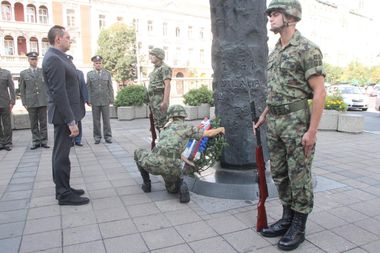 Београд, 17. август 2016. године – Министар за рад, запошљавање, борачка и социјална питања у Влади Републике Србије Александар Вулин предводио је данас државну церемонију полагања венаца и одавања почасти, којом је обележена 75-годишњица злочина на Теразијама који су над цивилима починиле окупационе снаге.