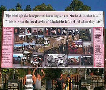 Београд, 22. август 2016. године – Канцеларија за Косово и Метохију саопштила је јуче да од привремених институција самоуправе у Приштини захтева да хитно уклоне билборд постављен у Мушутишту, код Суве Реке, којим се на најдиректнији начин распирује међунационална мржња и обесхрабрују Срби који су изразили спремност да се врате у то село.