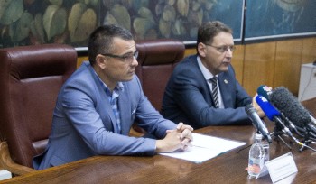 | Бранислав Недимовић и Саша Павлов на данашњој конференцији за новинаре |