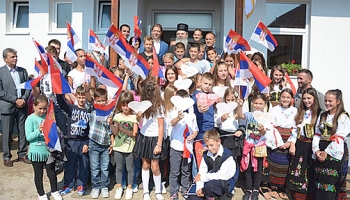 Клина, 2. септембар 2016. године – Директор Канцеларије за Косово и Метохију Марко Ђурић и министар просвете, науке и технолошког развоја у Влади Републике Србије Младен Шарчевић отворили су данас у селу Видање на Косову и Метохији новоизграђени објекат истуреног одељења ОШ "Радош Тошић" из Осојана.