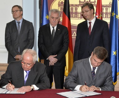 Потписивању овог документа присуствовали су и председник Србије Томислав Николић и амбасадор СР Немачке у Србији Аксел Дитман.