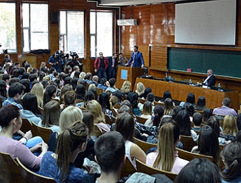 Он је позвао младе академце са ФПН у заједничку борбу за српске интересе, уз поруку да су врата Канцеларије за Косово и Метохију отворена.