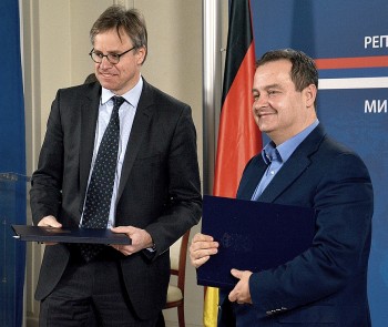 Београд, 7. децембар 2016. године – Први потпредседник Владе Републике Србије и министар спољних послова Ивица Дачић и амбасадор Немачке у Србији Аксел Дитман потписали су данас Споразум између Републике Србије и Савезне Републике Немачке о обављању плаћене делатности чланова породице чланова дипломатско-конзуларних представништава.
