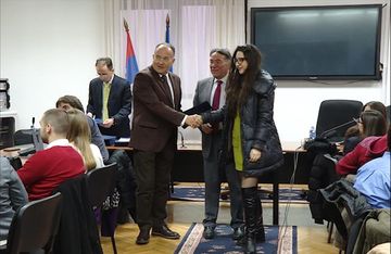 Београд, 28. децембар 2016. године – Министар просвете, науке и технолошког развоја у Влади Републике Србије Младен Шарчевић и декан Правног факултета у Београду Сима Аврамовић уручили су данас 100 стипендија у износу од 10.000 динара месечно најбољим студентима те образовне установе.