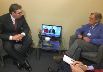 Београд/Давос, 18. јануар 2017. године – Председник Владе Републике Србије Александар Вучић састао се данас у Давосу са директором "Блумберга" Петером Грауером, са којим је разговарао о новим пројектима ове компаније у Србији, али и о томе како "Блумберг" може да допринесе извештавању о економским реформама и привлачењу страних инвеститора у Србију.