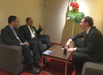 У току поподнева, премијер Вучић се састао и са директором компаније "Ал Дахра" Хадимом Ал Дарејем, са којим је разговарао о инвестицијама ове компаније у пољопривреду и прехрамбену индустрију у Србији.