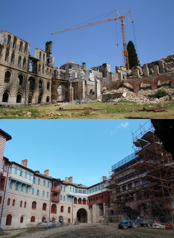 Обновом Хиландара руководе Свети манастир Хиландар и Задужбина Светог манастира Хиландара у непосредној сарадњи и садејству са Народном библиотеком Србије, Републичким заводом за заштиту споменика културе Београд и Покрајинским заводом за заштиту споменика културе из Петроварадина, и уз финансијску подршку буџетских средстава предвиђених за обнову Хиландара.