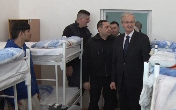 Обреновац, 24. фебруар 2017. године – Министар за рад, запошљавање, борачка и социјална питања у Влади Републике Србије Александар Вулин и генерални директор Генералног директората Европске комисије за суседску политику и преговоре о проширењу Кристијан Данијелсон обишли су данас Привремени прихватни центар у Обреновцу, у којем је смештено 860 миграната.