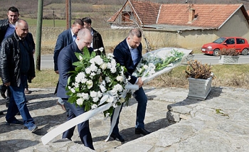 Велика Хоча, 28. фебруар 2017. године – Заменик директора Канцеларије за Косово и Метохију Владе Републике Србије Душан Козарев и министар за заједнице и повратак у привременим институцијама самоуправе у Приштини Далибор Јевтић положили су данас цвеће на споменик убијеним и киднапованим мештанима Велике Хоче.