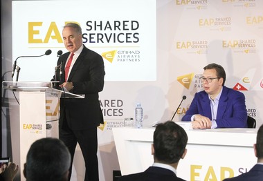 Београд, 13. март 2017. године – Председник Владе Републике Србије Александар Вучић и генерални директор "Etihad Aviation Group" Џејмс Хоган свечано су данас отворили Центар за обједињене услуге "Etihad Aviation Group" у оквиру пословног парка "Airport city" на Новом Београду.
