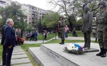 Београд, 28. април 2017. године – Државни секретар Министарства за рад, запошљавање, борачка и социјална питања Владе Републике Србије Драган Поповић предводио је данас државну церемонију полагања венаца и одавања државних и војних почасти поводом обележавања 99 година од смрти Гаврила Принципа.