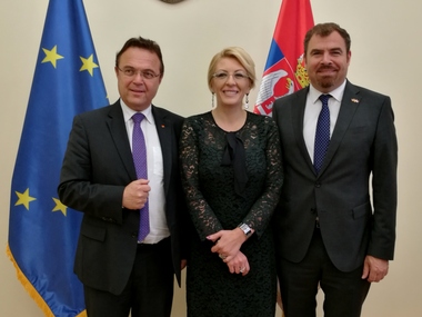 Београд, 24. мај 2017. године – Министар без портфеља у Влади Републике Србије задужен за европске интеграције Јадранка Јоксимовић разговарала је данас са делегацијом немачког Бундестага, коју су предводили Ханс-Петер Фридрих и Флоријан Хан.