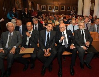 Нови Сад, 25. мај 2017. године – Министар културе и информисања Владан Вукосављевић и министар за рад, запошљавање, борачка и социјална питања Александар Вулин присуствовали су синоћ свечаности поводом Дана словенске писмености и Дана светих Ћирила и Методија у Матици српској у Новом Саду.