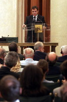 Част ми је да Вас, у овој прилици, ословим онако како су то чинили Ваши славни преци - са PATRES ET CONSCRIPTI. Установа Римског Сената, чију древну традицију Ви достојно настављате, извориште је вечитих вредности патриотизма и владавине закона. Те вредности, на којима је заснована, на којима се одржала и од којих и данас зависи наша цивилизација, у наше време настављају да живе кроз замисао и праксу европских интеграција.