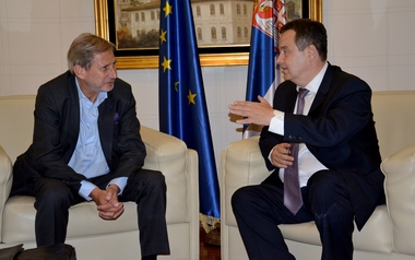 Београд, 8. јун 2017. године – Вршилац дужности председника Владе Републике Србије и министар спољних послова Ивица Дачић састао се синоћ, уочи билатералне посете Шпанији, са европским комесаром за суседску политику и преговоре о проширењу Јоханесом Ханом, који борави у радној посети Србији.