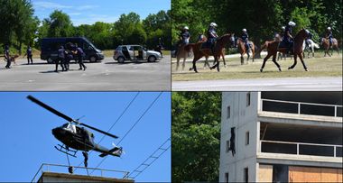 Полазници Центра за основну полицијску обуку могли су да виде показне вежбе припадника Полицијске бригаде Полицијске управе за град Београд – приказ рада и обучености водича службених паса, стројево јахање Чете коњаника у покрету и хапшење осумњиченог за разбојништво из путничког возила у покрету.