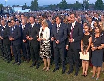 Нови Сад, 4. август 2017. године – Државна манифестација посвећена обележавању Дана сећања на страдале и прогнане Србе у војно-полицијској акцији Хрватске "Олуја", у којој је убијено 2.000, а протерано више од 200.000 Срба, одржана је вечерас у насељу Ветерник код Новог Сада.