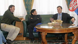 Београд, 14. јун 2005. године - Председник Владе Републике Србије Војислав Коштуница примио је данас аргентинског фудбалера Дијега Арманда Марадону и нашег прослављеног режисера Емира Кустурицу.