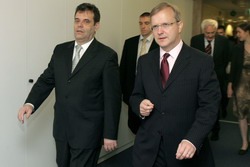 Београд/Брисел, 16. јун 2005. године - Председник Владе Републике Србије Војислав Коштуница разговарао је данас у Бриселу са европским комесаром за проширење ЕУ Оли Реном, који је том приликом упутио похвале Влади Србије на значајном напретку у сарадњи са Хашким трибуналом у првим месецима ове године. Рен је најавио да је ЕУ спремна да 5. октобра започне преговоре о придруживању СЦГ Европској унији.