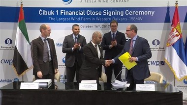 Београд, 16. октобар 2017. године – Министар рударства и енергетике у Влади Републике Србије Александар Антић оценио је данас, након потписивања уговора о финансирању ветропарка са компанијом из Уједињених Арапских Емирата, да је ветропарк у Чибуку највећи пројекат те врсте у Југоисточној Европи, али и највећа појединачна приватна инвестиција у Србији.