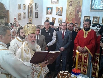 Овогодишњи домаћини храмовне славе били су Никола Косовац, Зоран Ранковић, Милош Жужа и Миленко Зорић, са којима је, заједно са верним народом, патријарх Иринеј преломио славски колач.