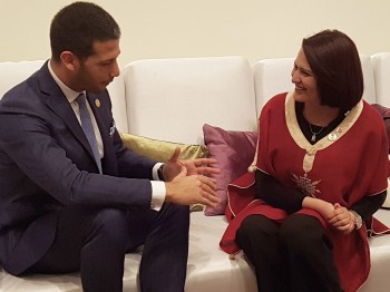 | Вања Удовичић у разговору са министром омладине и спорта Туниса Маждолин Шерн |