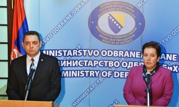 Београд/Сарајево, 13. децембар 2017. године – Министар одбране у Влади Републике Србије Александар Вулин и министар одбране Босне и Херцеговине Марина Пендеш разговарали су данас у Сарајеву о положају одбрамбене индустрије, заједничком наступу и партнерству двеју земаља.