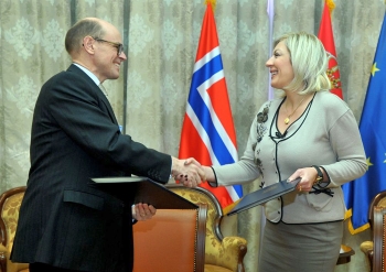 Београд, 10. јануар 2018. године – Министар за европске интеграције у Влади Републике Србије Јадранка Јоксимовић и амбасадор Норвешке Арне Санес Бјорнстад потписали су данас Меморандум о разумевању, који предвиђа бесповратну помоћ Норвешке од 2,7 милиона евра за различите пројекте у Србији.