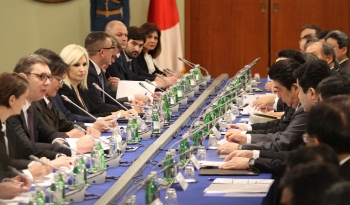 На састанку делегација Србије и Јапана председник Србије Александар Вучић оценио је да ова посета има историјски значај за унапређење односа двеју земаља, с обзиром на то да је реч о првој посети јапанског премијера после 31 године.