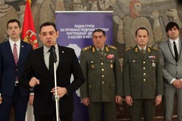 Београд, 6. фебруар 2018. године – Министар одбране у Влади Републике Србије Александар Вулин отворио је данас у Палати Србија округли сто „Политичко-безбедносни и одбрамбени аспекти косовско-метохијског проблема“, организован у оквиру унутрашњег дијалога о Косову и Метохији.