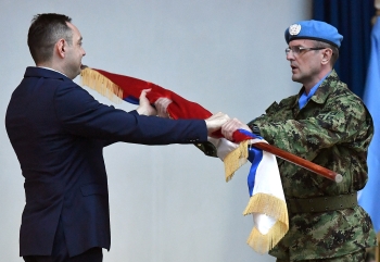 Вулин је предао заставу Републике Србије команданту српског контингента пуковнику Горану Радосављевићу.