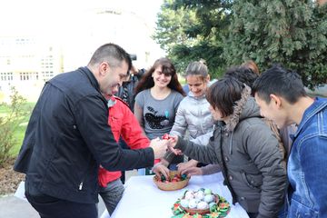 Приликом поделе ускршњих јаја уследило је и традиционално туцање јајима, наводи се у саопштењу Министарства за рад, запошљавање, борачка и социјална питања.