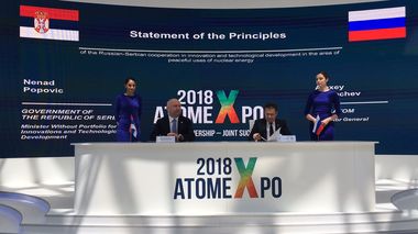 Србија први пут наступа на међународном форуму "Атомекспо", који се одржава од 14. до 16. маја. То је највећа изложбена и пословна платформа за дискусију о тренутном стању нуклеарне индустрије и постављању будућих трендова и одржава се једанпут годишње, почевши од 2009. године у организацији РОСАТОМ-а.