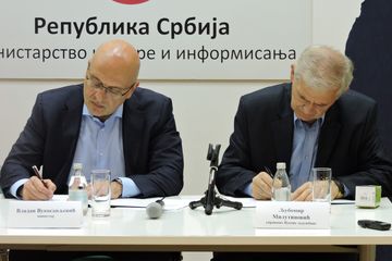 Београд, 8. јун 2018. године – Министар културе и информисања у Влади Републике Србије Владан Вукосављевић потписао је данас уговоре са управницима Фондације "Задужбина Доситеј Обрадовић" Мирјаном Драгаш и Вукове задужбине Љубомиром Милутиновићем о суфинансирању текућих расхода и издатака тих задужбина у 2018. години.