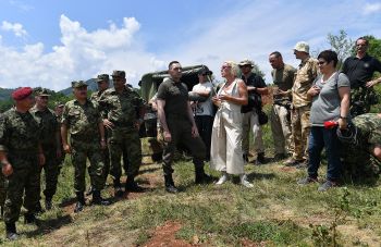 Димитровград, 6. јул 2018. године – Министар одбране у Влади Републике Србије Александар Вулин обишао је данас на падинама Влашке планине код Димитровграда локацију где се снима документарно-играни филм о борбама на Кошарама и Паштрику у време НАТО агресије 1999. године.