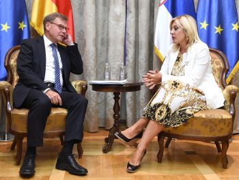 У разговору је констатовано да су односи двеју држава добри и да о томе сведоче бројне немачке инвестиције у привреду Србије.