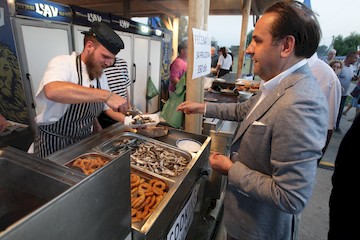 Потпредседник Владе је обишао и неколико штандова где се праве рибљи специјалитети, продају љути сосеви и сарајевски ћевапи и пите.