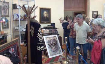 Новинаре и посетиоце, међу којима је било и деце, у обилазак зграде у Немањиној улици из Прес сале повела је историчарка уметности Катарина Голубовић, која их је упознала са архитектуром и наменом здања које је дело руског архитекте Николаја Краснова.