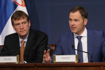 Џејмс Руф и Синиша Мали на данашњој конференцији за новинаре |