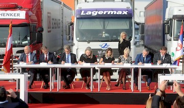 Потписивању уговора присуствовали су министар просвете, науке и технолошког развоја у Влади Републике Србије Младен Шарчевић, председник Привредне коморе Србије Марко Чадеж, потпредседник Привредне коморе Аустрије Ричард Шенц, представник Аустријске развојне агенције (АДА) Гинтер Шал, представник компаније Gebruder Weiss Драган Симовић и директор Управе царине Србије Милош Томић.