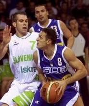 Дуел Игора Ракочевића (плави дрес, СЦГ) и Санија Бећировића (Словенија) |