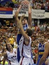 Нови Сад, 18. септембар 2005. године - Мушка кошаркашка репрезентација Србије и Црне Горе савладала је вечерас у Новом Саду, у трећем колу "Д" групе 34. Европског првенства, национални тим Летоније резултатом 82:67 (31:19, 16:12, 20:19, 15:17).