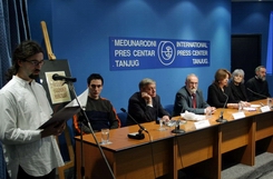 Београд, 21. октобар 2005. године - У Међународном прес центру Танјуга данас је отворена изложба фотографија "Бањска - нада у васкрсење", чија је поставка изложена уз благослов владике рашко-призренског Артемија, који је, уз фоторепортера Танјуга Оливера Бунића, аутор изложених фотографија овог косовско-метохијског манастира из 14. века, који је после 520 година делимично обновљен.
