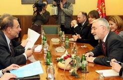 Београд, 5. децембар 2005. године - Потпредседник Владе Републике Србије Мирољуб Лабус и високи представник Европске уније за спољну политику и безбедност Хавијер Солана разговарали су данас о сарадњи са Трибуналом у Хагу, референдуму у Црној Гори и Косову и Метохији.